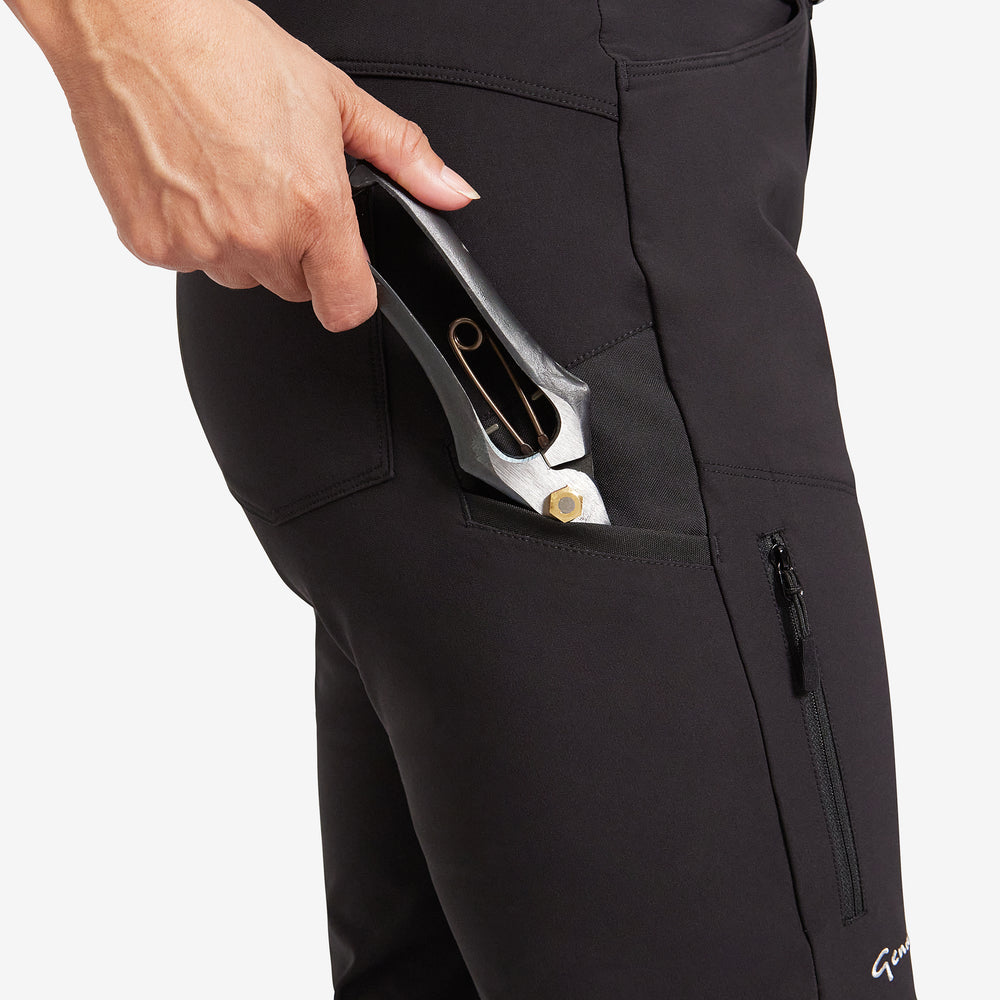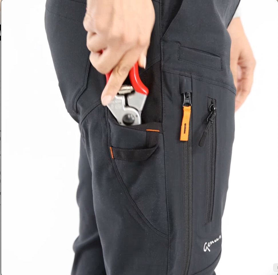 How many of us have lost our secateurs and months later found them, all rusted up, in the compost bin? The right-hand pocket on all Genus trousers, for both men and women, is designed to take most types of secateurs. We switch between a Felco 2 and our own Japanese secateurs and they both fit beautifully into the pocket. And so comfortable, you won't even feel them.