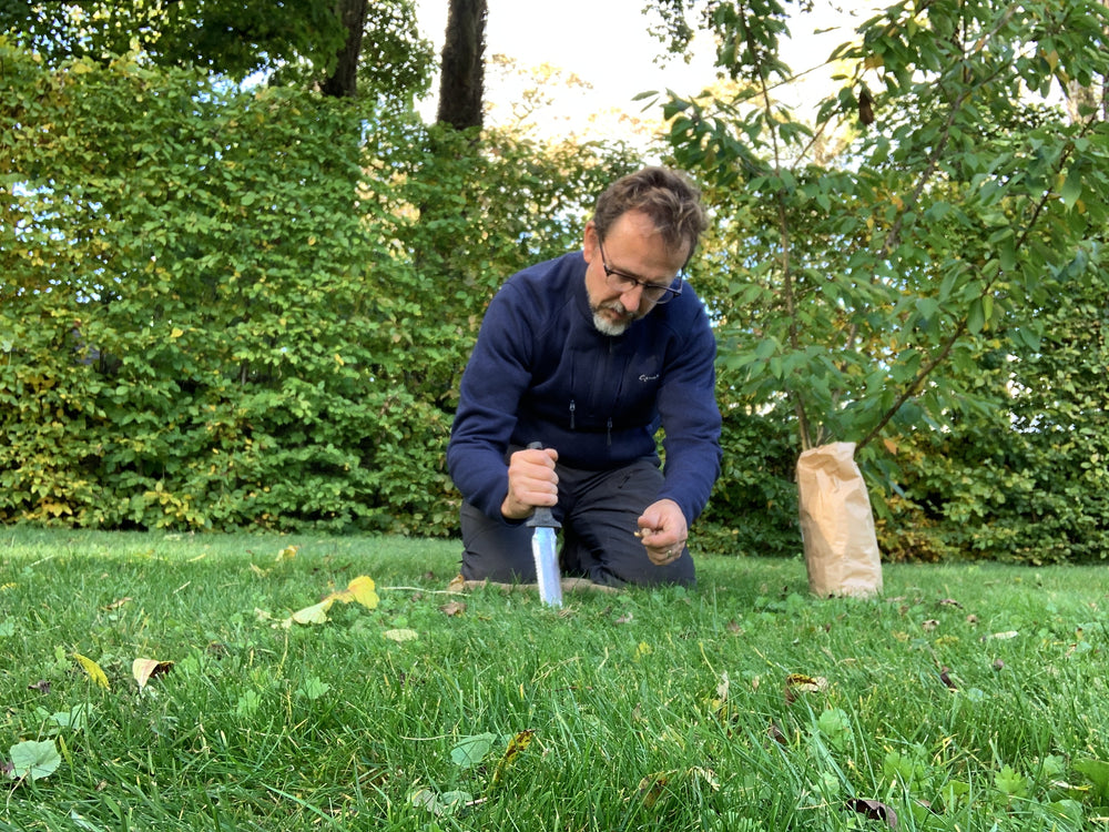 The left-hand pocket on the thigh of Genus trousers is specially designed to carry the hori hori tool we sell on our website.